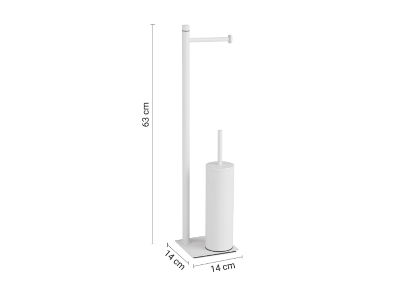 Piantana porta rotolo e porta scopino bianco matt "Trilly" MATERIALE acciaio inox, resine, sabbiaMISURE TECNICHE 14X14X64