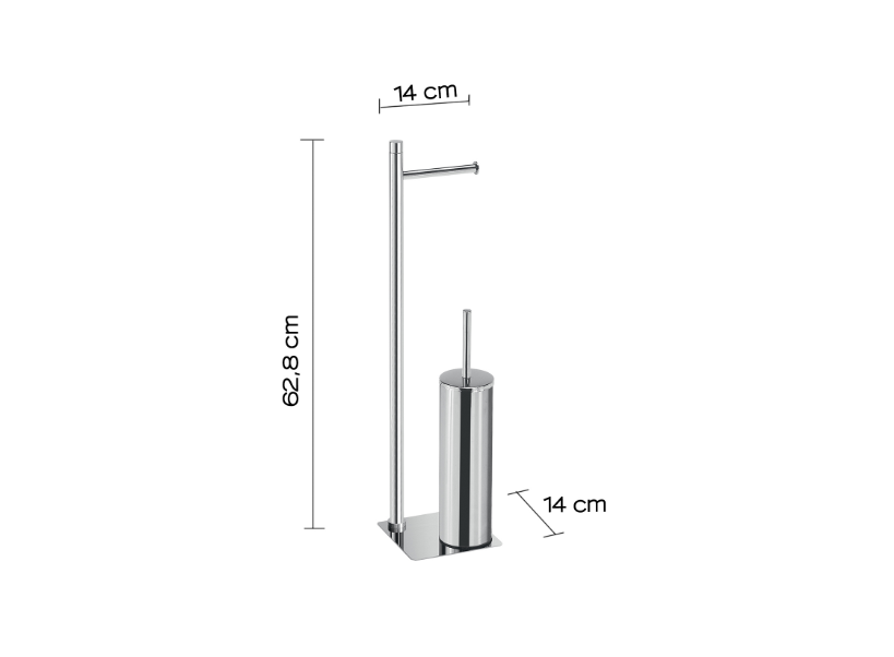 Piantana porta rotolo e porta scopino cromata "Trilly" MATERIALE acciaio inox, resine, sabbiaMISURE TECNICHE 14X14X64