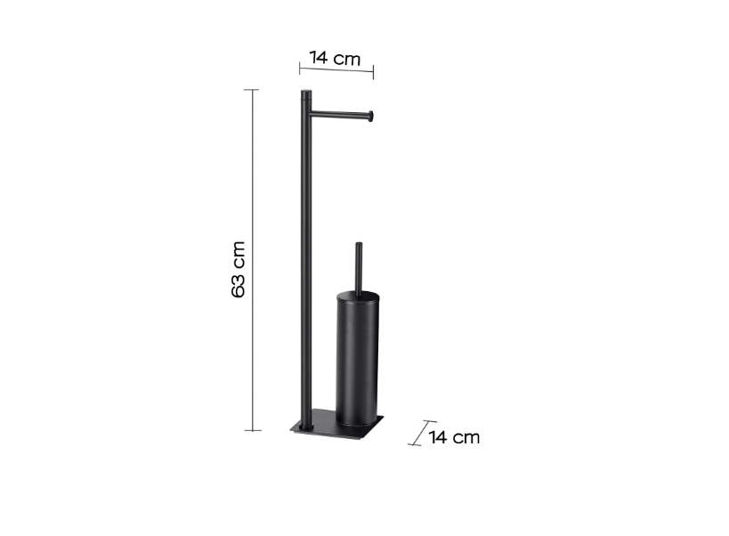 Piantana porta rotolo e porta scopino nero matt "Trilly" MATERIALE acciaio inox, resine, sabbiaMISURE TECNICHE 14X14X64