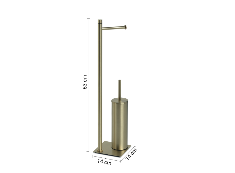 Piantana porta rotolo e porta scopino oro matt "Trilly" MATERIALE acciaio inox, resine, sabbiaMISURE TECNICHE 14X14X64