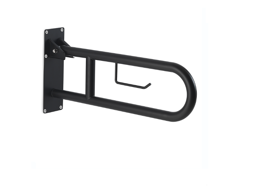 Appoggio ribaltabile 60 cm con portarotolo nero matt "Snug"