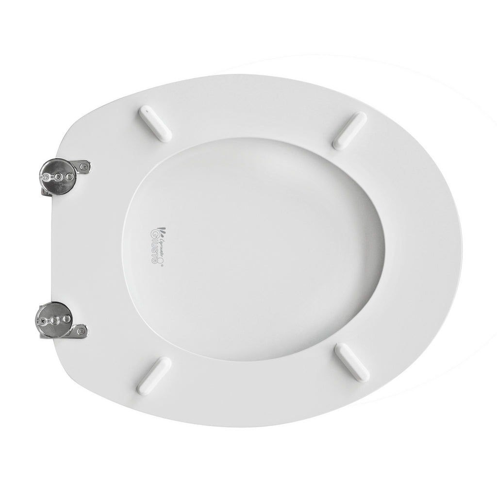 Sedile universale in MDF stampato completo di supporti in acciaio inattaccabili da detergenti per W.C.