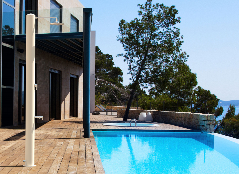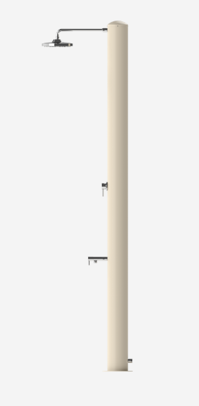 Tevere è indubbiamente il modello passe-partout della linea Gocce. Compatta, dal design minimalista, si adatta perfettamente a tutti gli ambienti e necessita di pochissimo spazio per l’installazione. Si compone di un tubo solare in acciaio inox con verniciatura bianco perla. Le parti idrauliche, realizzate in metallo nobile, sono opportunamente studiate e trattate per uso esterno. Tra queste, l’innovativo soffione con morbidi ugelli gommati che rendono semplicissima e veloce l’eliminazione del calcare, allungando sensibilmente il ciclo di vita del componente. Il soffione a risparmio energetico “eco rain”, grazie a particolari fessure situate nella griglia della doccia, miscela l’aria all’acqua, fornendo un getto potente ed efficace ed impiegando una minore quantità d’acqua. In una giornata soleggiata, Tevere regalerà fino al calar della sera il piacere dell’avvolgente tepore dell’acqua, riscaldata dai raggi solari.