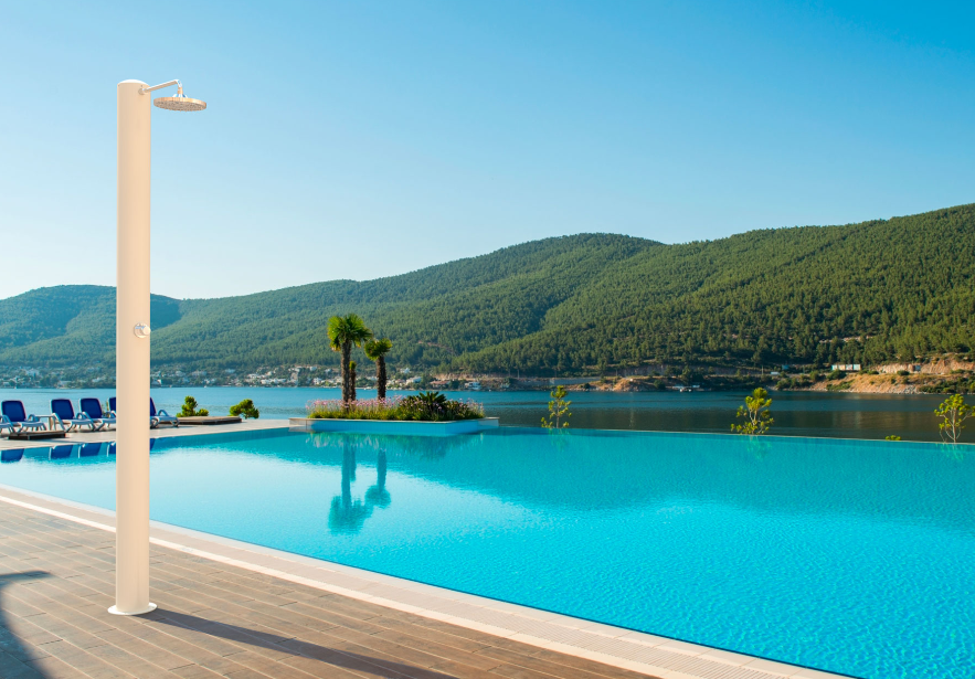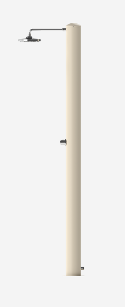 Tevere è indubbiamente il modello passe-partout della linea Gocce. Compatta, dal design minimalista, si adatta perfettamente a tutti gli ambienti e necessita di pochissimo spazio per l’installazione. Si compone di un tubo solare in acciaio inox con verniciatura bianco perla. Le parti idrauliche, realizzate in metallo nobile, sono opportunamente studiate e trattate per uso esterno. Tra queste, l’innovativo soffione con morbidi ugelli gommati che rendono semplicissima e veloce l’eliminazione del calcare, allungando sensibilmente il ciclo di vita del componente. Il soffione a risparmio energetico “eco rain”, grazie a particolari fessure situate nella griglia della doccia, miscela l’aria all’acqua, fornendo un getto potente ed efficace ed impiegando una minore quantità d’acqua. In una giornata soleggiata, Tevere regalerà fino al calar della sera il piacere dell’avvolgente tepore dell’acqua, riscaldata dai raggi solari.