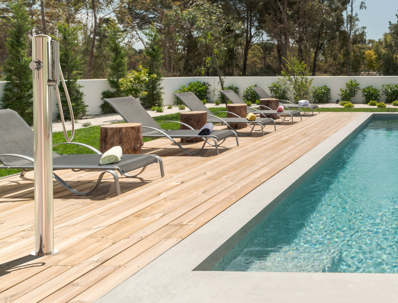 Flex è la rinfrescante soluzione per liberarsi da cloro, salsedine o semplicemente per godere un momento di fresco sollievo, nelle afose giornate estive. Minimal e compatta, Flex è dotata di un pratico flessibile e doccetta anticalcare. Disponibile sia nella versione con rubinetto miscelatore che nella versione con rubinetto a passo rapido e chiusura manuale, Flex è realizzata in acciaio inox di elevata qualità con finitura a specchio per assicurare un’eccellente resistenza agli agenti atmosferici e alla corrosione. La base di fissaggio è studiata per garantire robustezza e stabilità di ancoraggio a terra. Internamente, tubi di connessione flessibili facilitano il collegamento all’impianto rendendo l’installazione un’operazione semplice e veloce. Il prodotto ideale per chi cerca uno strumento compatto e versatile. Il comfort di una doccia, nelle minute dimensioni di un lavapiedi.
