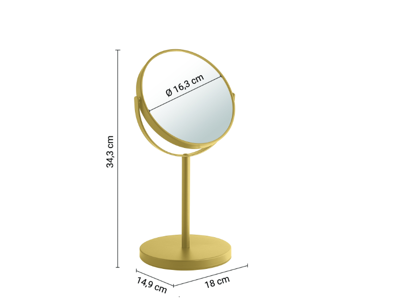 Specchio "Anna" oro matt da parete ingranditore e non, bifacciale. Fattore ingrandimento 5x MATERIALE metallo, vetroMISURE TECNICHE 18X14,9X34,3