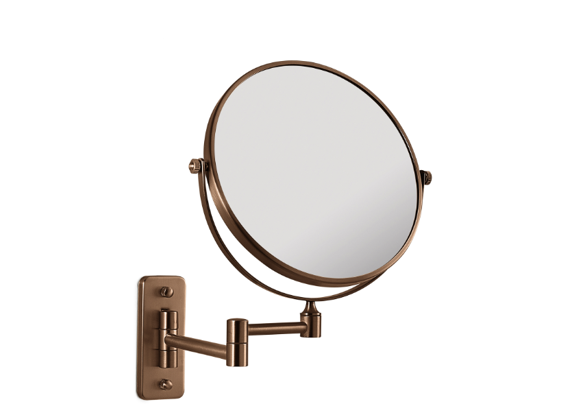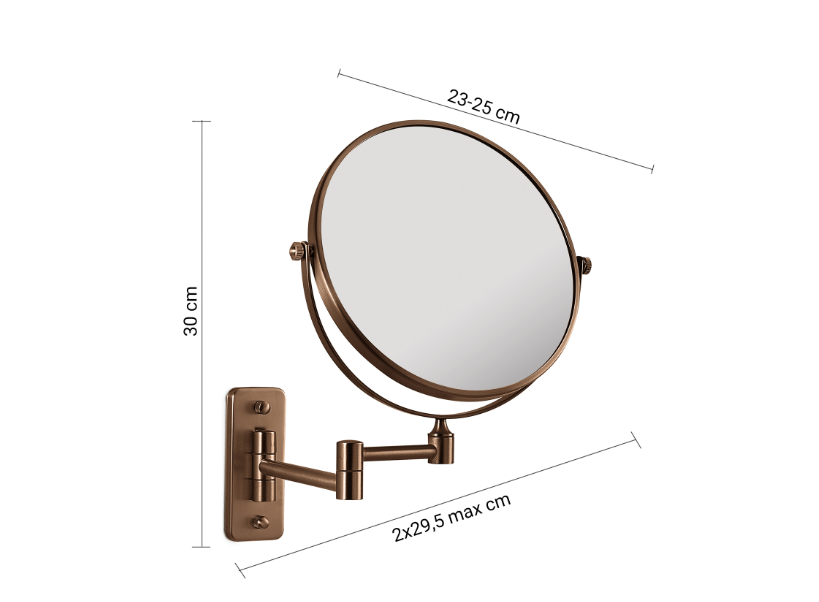 Specchio "Gaia" oro rosa da parete ingranditore e non, bifacciale. Fattore ingrandimento 3x MATERIALE acciaio inox aisi 304, ottone, cromall®, vetro MISURE TECNICHE 23-25×2-29,5