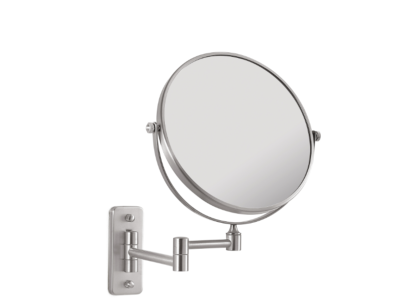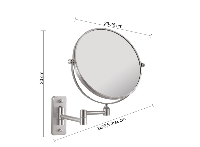 Specchio "Gaia" spazzolato da parete ingranditore e non, bifacciale. Fattore ingrandimento 3x MATERIALE acciaio inox aisi 304, ottone, cromall®, vetroMISURE TECNICHE 23-25×2-29,5